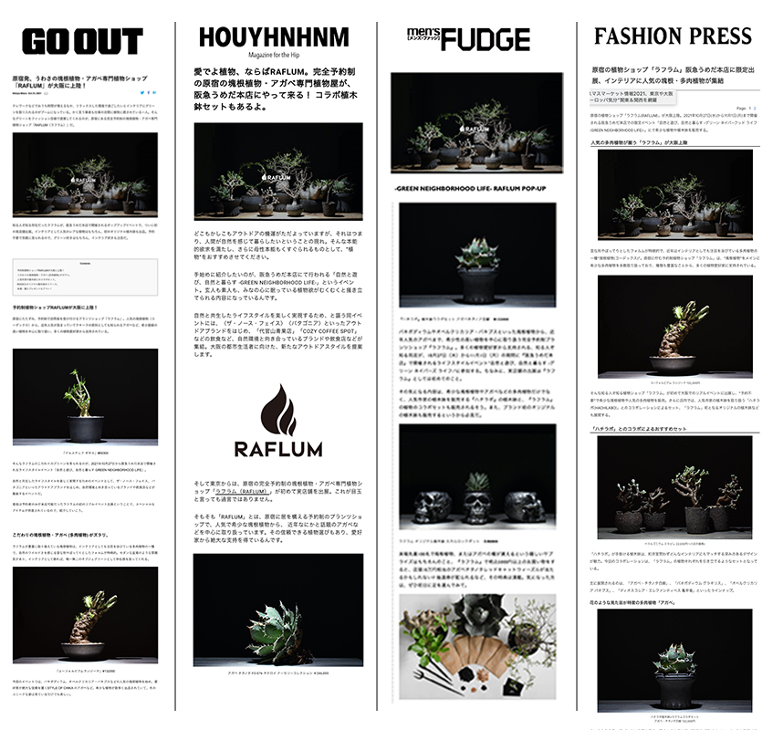 ポップアップイベントにて弊社植物ショップ「RAFLUM」の出店が話題となり、各メディアに掲載されました。